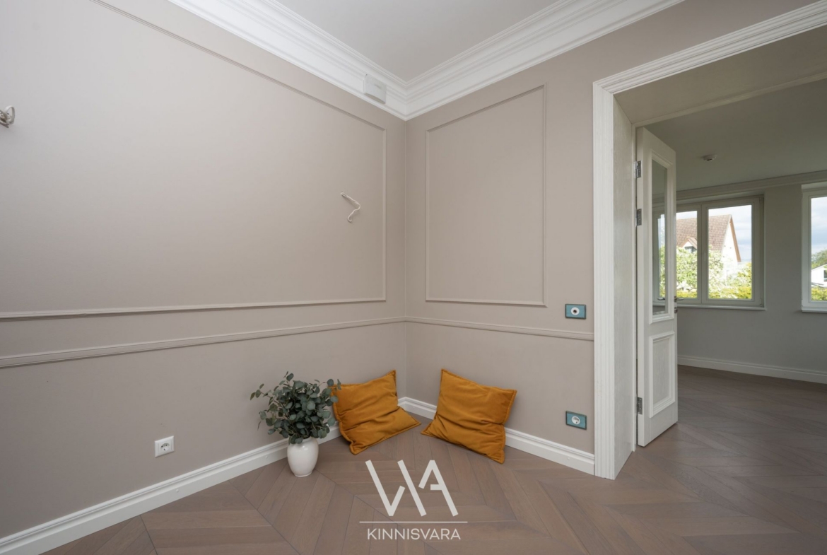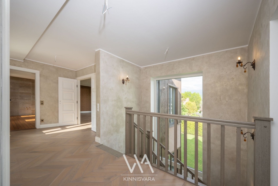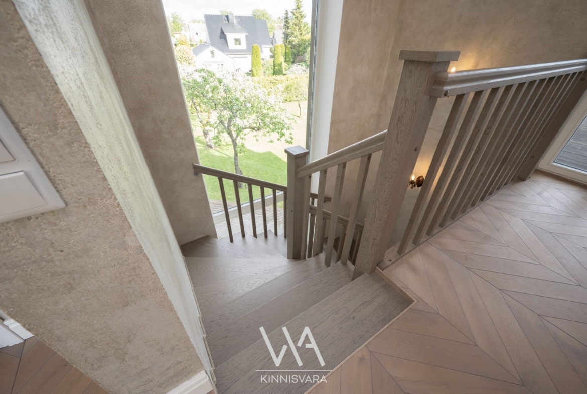 Maja on renoveeritud 2017. aastal, lisandunud on avar juurdeehitus, mille kõrged laed ja suured aknad toovad tuppa palju valgust ja avarust. Planeering on mitmekülgne ja funktsionaalne: 9 tuba, mitmed rõdud, terrass, saun, kamin ja avar päikeseküllane hooldatud hooviala. Maja üldpind on 392,5 m², millele lisanduvad terrassid ja pööning – ruumi on siin tõesti palju.